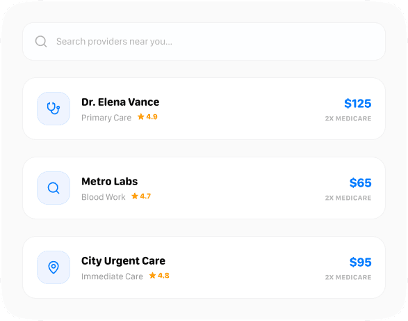 - Non-physician providers publish their own pricing in the directory.