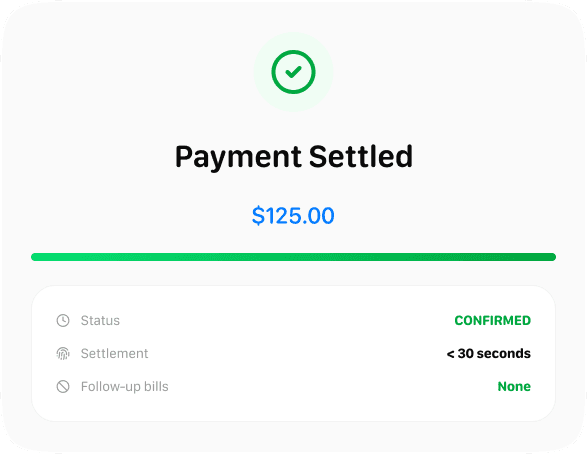 - Payment settles in seconds.